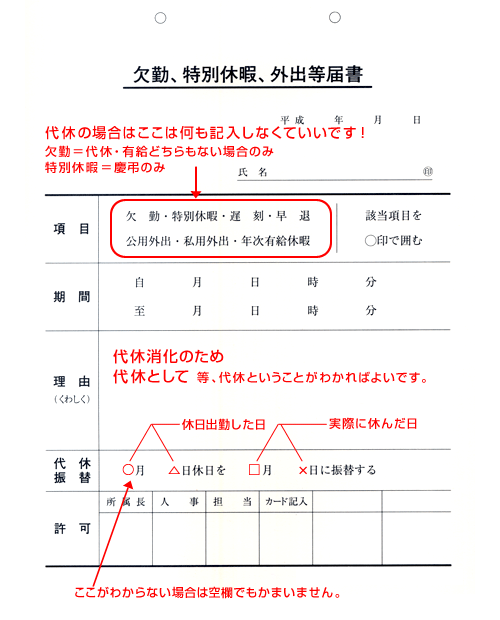 「代休振替の届書」の書き方は以下を参考にしてください。