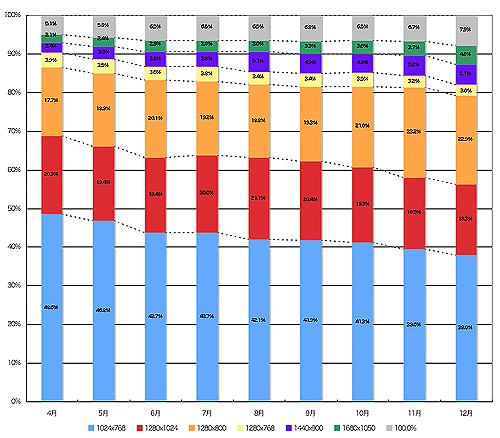 [2008年度ディスプレイサイズのシェア率移行グラフ]
