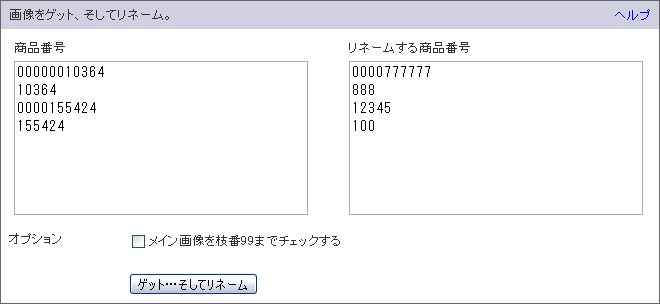 指定した商品番号の、メイン画像とサブ画像を本サーバからゲット。指定のファイル名にリネームもしてくれます。